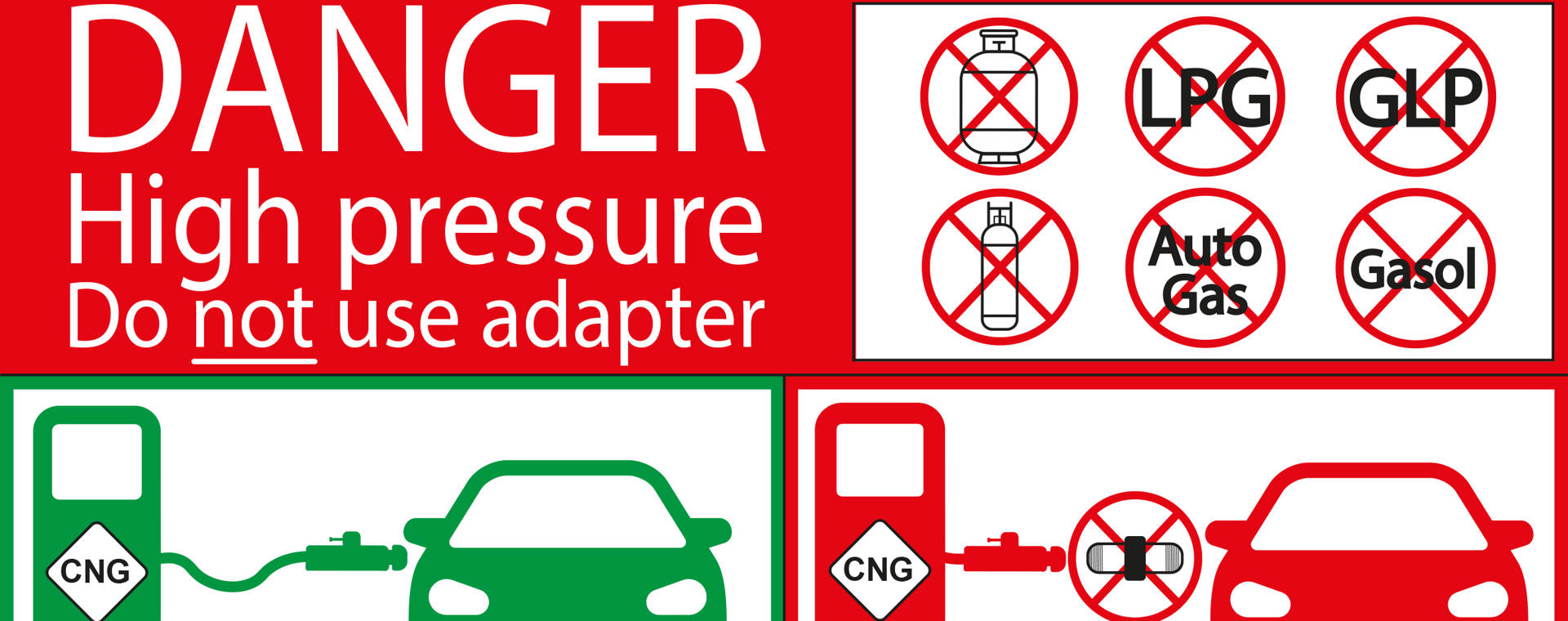 En publik tankstation ska ha informationsskyltar, som upplyser om gastyp och faran med att använda adapter. Skyltarna ska finnas väl synliga på dispensern eller i dess direkta närhet, enligt "Anvisningar - tankstationer för metangasdrivna fordon (TSA 2020)". Dekalen har tagits fram av Energigas Sverige i samarbete med medlemmarna.