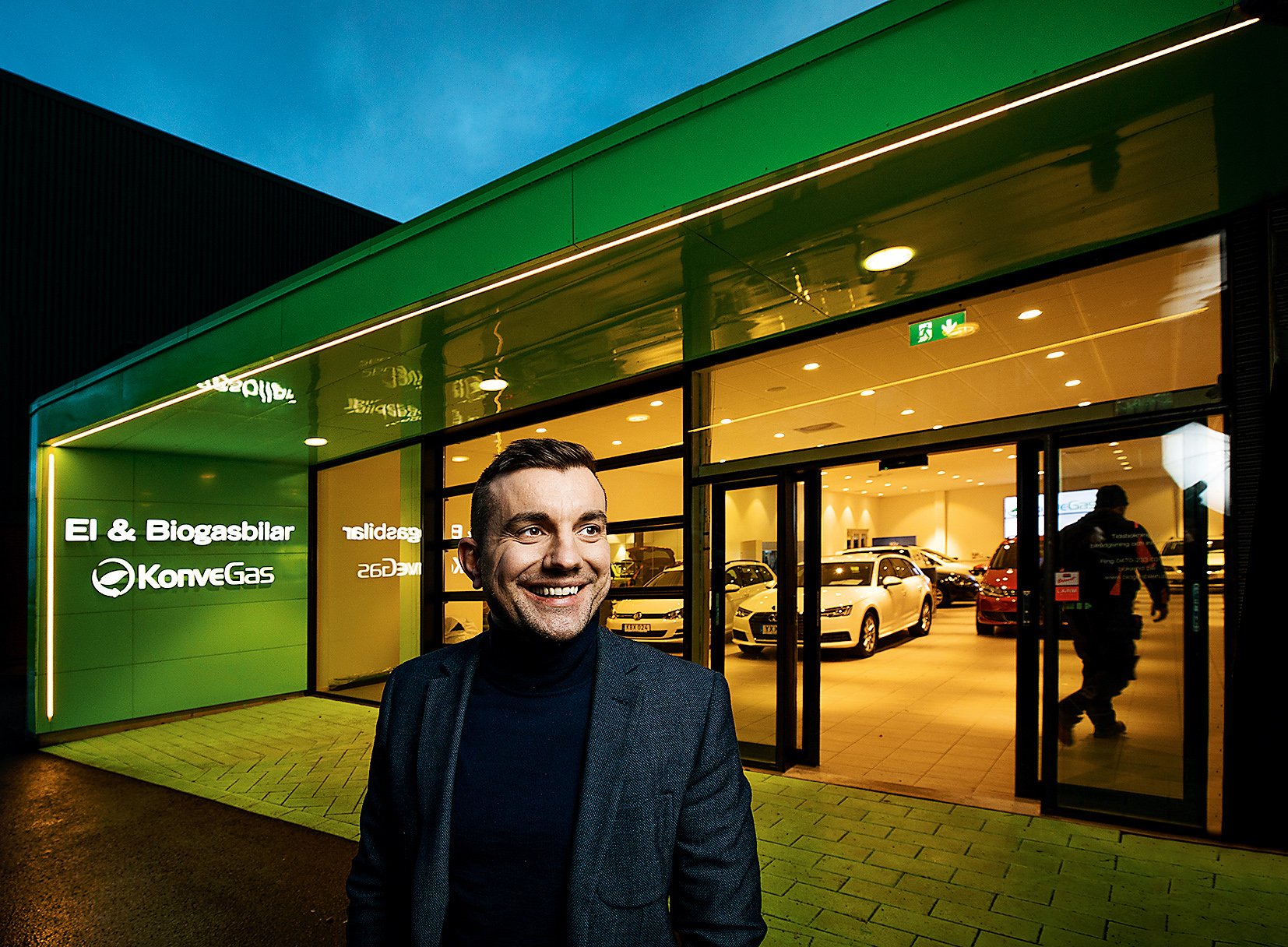 För den som är intresserad av gasbilar är El & Biogasbilar i Växjö ett självklart mål. I den ljusa lokalen trängs mängder av gas och elbilar som väntar på att säljas eller leasas ut. Vägg i vägg ligger företaget Konvegas som bygger om både nya och gamla bensinbilar för gasdrift.