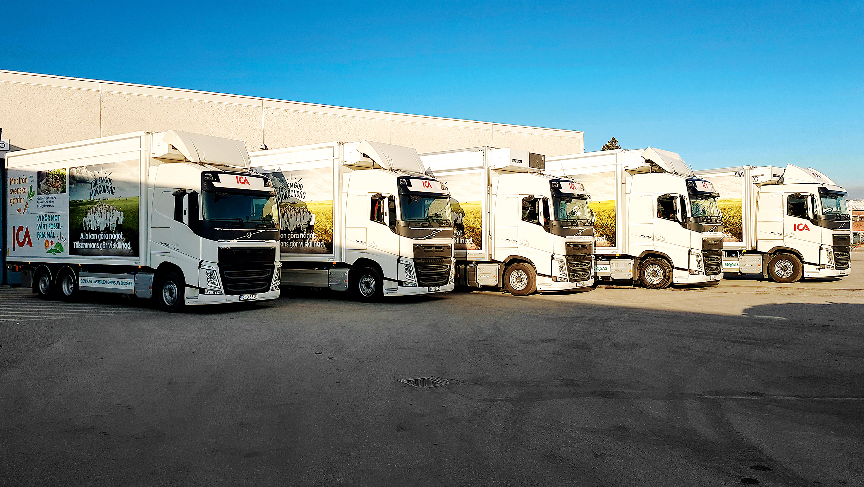 Under de senaste två åren har Ica Sverige gått från noll användning av biogas till 3 200 ton i år. Var tionde transport mellan Icas lager och butiker körs numera på biogas. Det har lett till en minskning av koldioxidutsläppen med 10 000 ton.